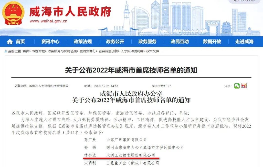 ¿ËÈÕ£¬£¬£¬£¬£¬2022Äê¡°Íþº£ÊÐÊ×ϯ¼¼Ê¦¡±Ãûµ¥Ðû²¼£¬£¬£¬£¬£¬ÎÒ¹«Ë¾Ô±¹¤ÁÖÀ°ñÉÏÖøÃû¡£¡£¡£¡£¡£¡£¡£